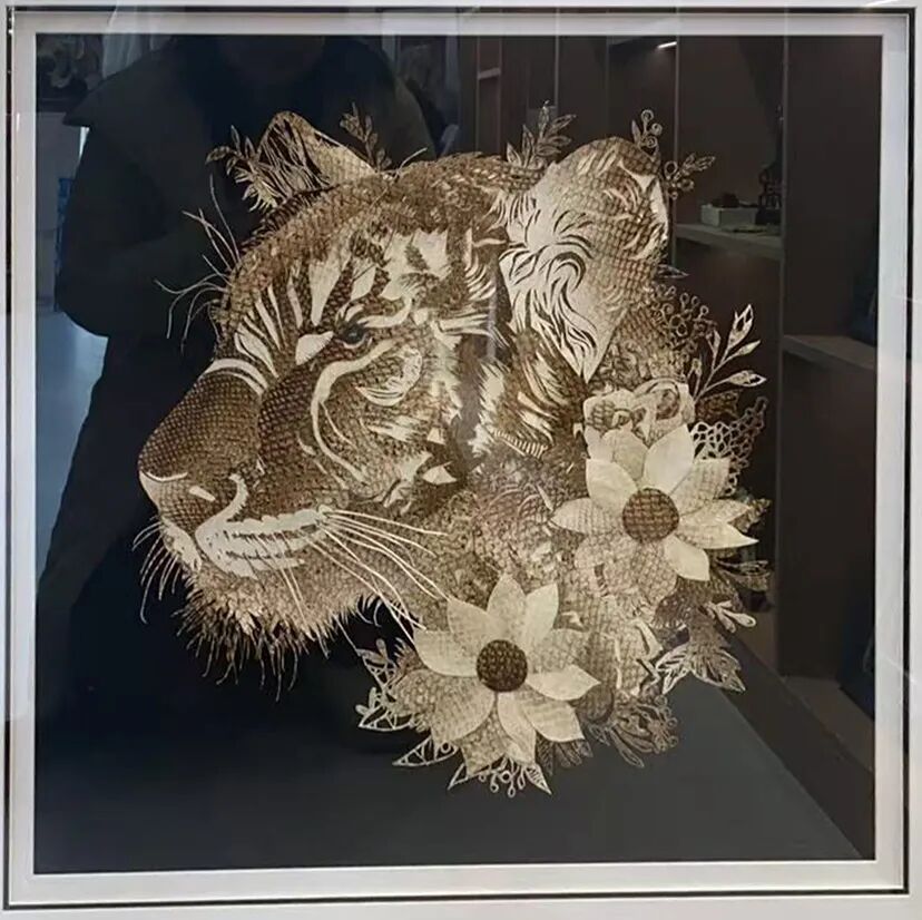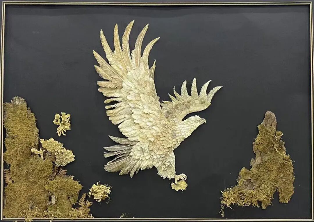 毕玉荣的鱼皮工艺源自黑龙江流域少数民族古老技艺,是黑河鱼皮工艺的奠基性流派。工艺以野生大马哈鱼皮等为原料,经剖制、去鳞、脱脂、鞣制、阴干等多道纯手工工序,保留鱼皮天然纹理与韧性,再通过剪、刻、嵌、粘、缝、熨等技法,结合桦树皮等材质打造综合镶嵌艺术品,兼具古朴质感与艺术张力。作为黑河鱼皮工艺的开拓者,她打破技艺封闭性,既坚守“天然为本、精雕细琢”的传统内核,又鼓励弟子创新——如今其传承谱系已形成“传统工艺+现代设计”的多元发展格局,作品从艺术画作延伸至钥匙链等实用衍生品,不仅亮相深圳展会引发热捧,更通过中俄文化交流走向国际,让黑河鱼皮工艺成为跨文化传播的文化名片。